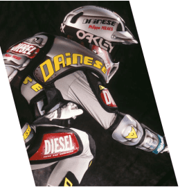 В середине 80-х многие гонщики тестируют защитные возможности поглощения ударов одежды Dainese. Представлен протектор спины и наколенник «saponette».